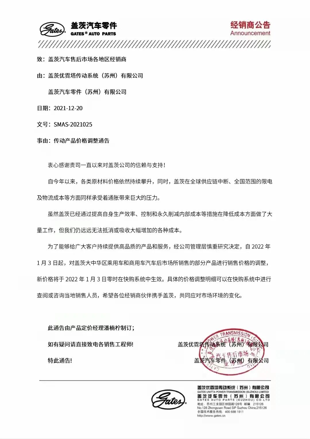 随着市场环境的变化,受到各类汽车配件所需原材料的持续攀升,以及全球供应链的中断,全国范围的限电及物流成本方面的压力,国际一线配件品牌博世、盖茨等也纷纷发布调价公告。