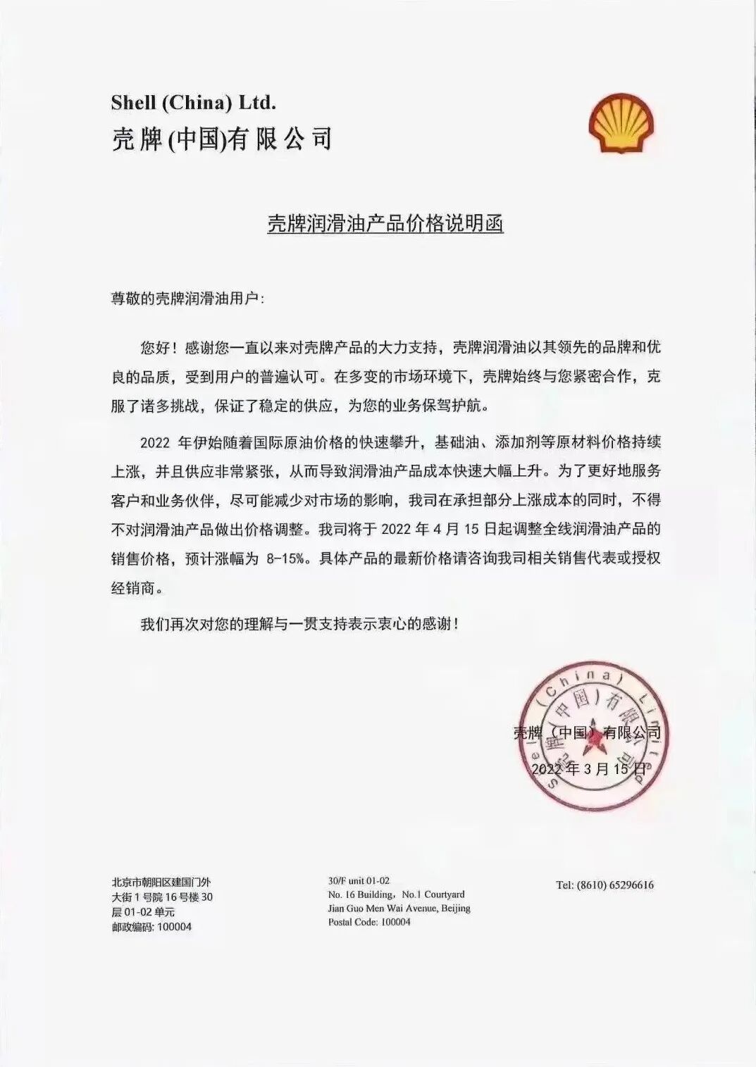 在汽油价格猛涨的同时,机油价格也迎来一波大涨,最高涨幅甚至超过15%,其中包括美嘉壳等主流润滑油企业。针对这次涨价,各大润滑油企业提及的主要原因是原油价格、主要添加剂、氢氧化锂等原材料价格的上涨导致的制造成本攀升。